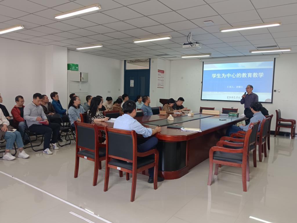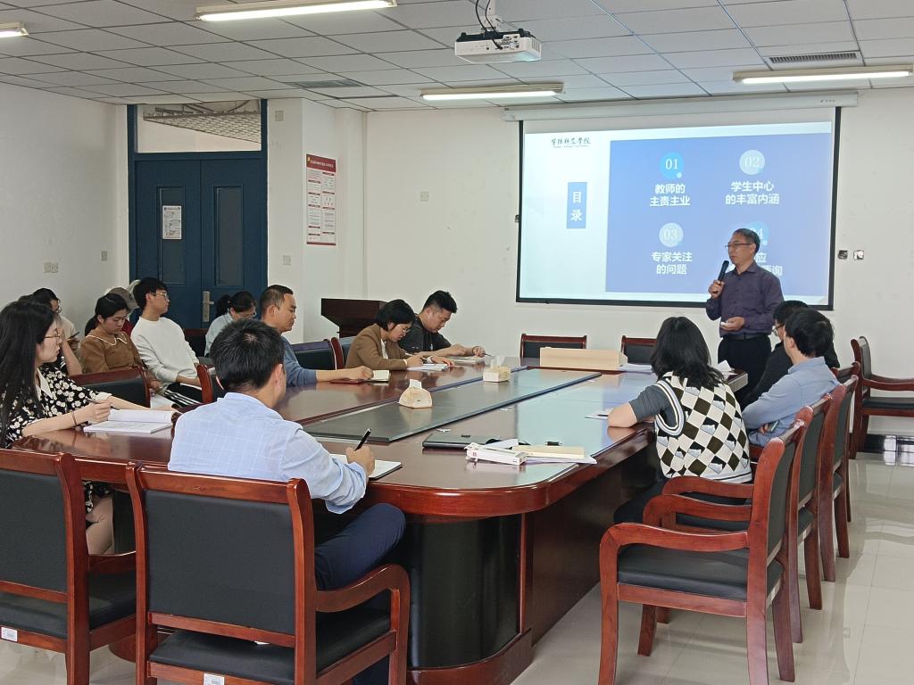 唐耀红教授围绕“学生中心,内涵发展”的核心内容,从多个维度展开详细讲解。在阐述教师的主责主业时,他指出,人才培养、专业建设和课程建设是教师工作的重中之重。人才培养需精准定位,专业建设要突出特色,课程建设则涵盖课程模式、教学内容、教学模式和评价模式等多个方面,且教学应始终处于中心地位,科研、社会服务和文化传承都应服务并贯穿于教学之中,为教师们明确了工作方向。 谈及学生中心的丰富内涵,唐耀红教授深入解读,强调学校和学院的一切工作都应围绕学生展开。人才培养模式应助力学生成长成才,培养目标要为学生体面就业提供指引,教学内容要为学生可持续发展筑牢根基,教学方法手段要支持学生达成学习目标,学业评价要成为学生查找不足的有效工具,最终实现学生学习成效的持续提升,让教师们深刻理解了以学生为中心的教育理念的实践要点。 针对专家关注的学科专业特色建设、课程建设针对性、质量体系有效性等一系列问题,唐耀红教授结合实际案例进行分析,并引导教师们展开讨论。在探讨应对专家访谈环节,唐耀红教授强调教师要充分展示学校、学院、学生以及自身的亮点,秉持个人与学校、学院利益共同体的理念,同时牢记审核评估的方针、目的,熟悉学校和学院的核心制度与标准,做到心中有数、应对自如。