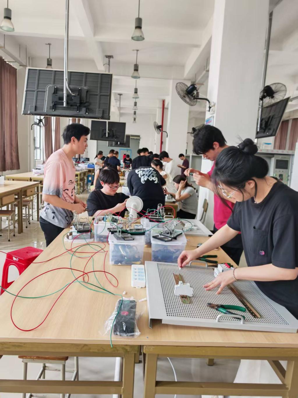学生在实践电器设备接线项目