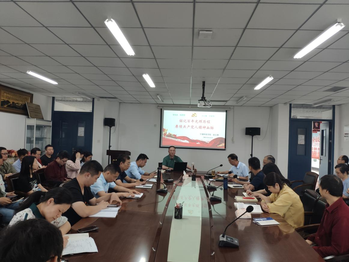 校机关党委赵公弼书记以《铭记百年光辉历程 赓续共产人精神血脉》为题,从深刻领会习近平总书记关于党的历史的重要论述、全面了解中国共产党百年奋斗光辉历程和历史成就、赓续中国共产党人在长期奋斗中铸就的伟大精神等三个方面深刻阐述了党组织近百年发展历程,为与会党员干部、教师上了一堂生动的党史教育课,也使大家接受了一次深刻的党性教育和精神洗礼。