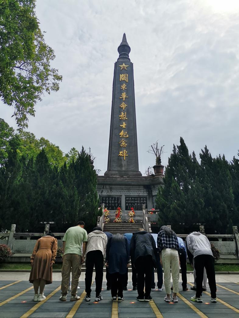 在闽东烈士陵园,全体党员在闽东革命烈士纪念碑前肃立,向闽东革命先烈默哀,向闽东革命先烈三鞠躬致敬。