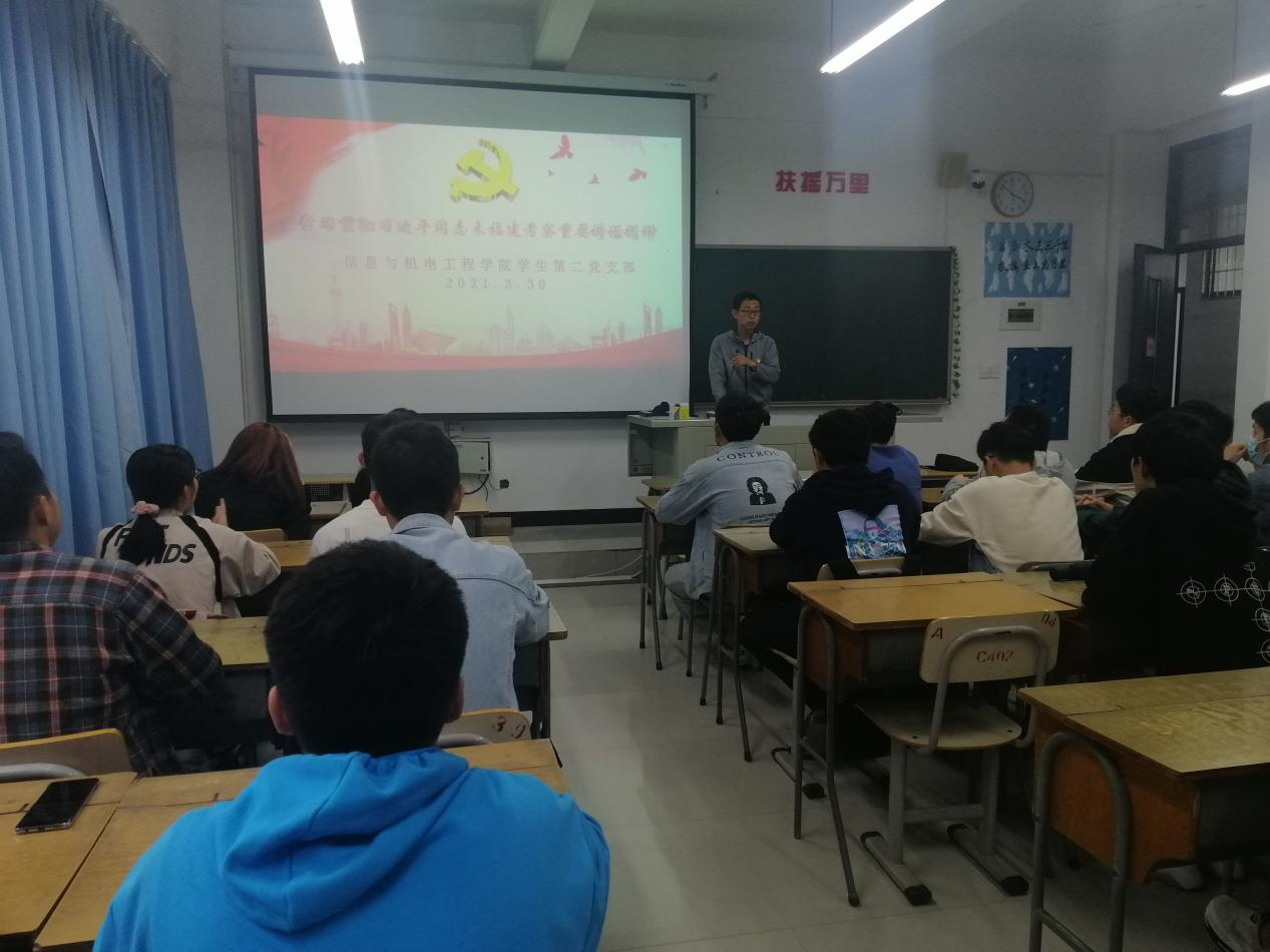 为进一步深入学习贯彻习近平新时代中国特色社会主义思想和党的十九届五中全会精神,2021年3月30日,信息与best365中国官方网站学生第二党支部组织深入学习宣传贯彻落实习近平总书记来闽考察重要讲话精神。