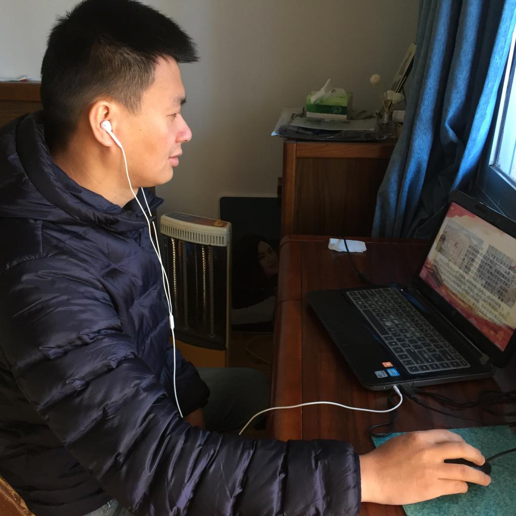 同学们在家中通过网络平台参加主题班会课