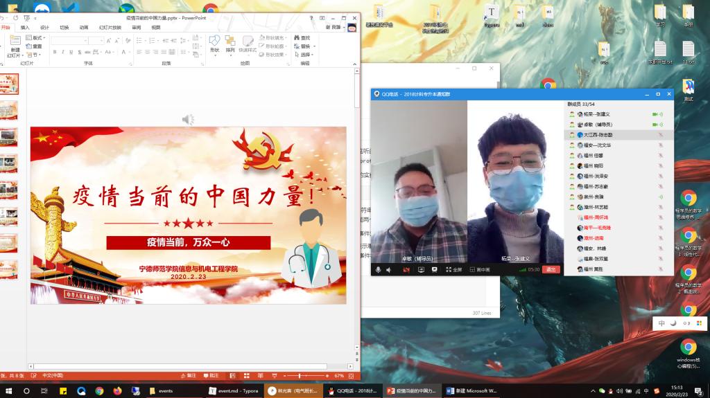 主题班会以班级为单位,辅导员通过班级QQ群或者钉钉网络平台面向学生开展“抗击疫情”网络主题班会。为达到预期效果,信息与best365中国官方网站党委积极准备,查阅相关信息,组织辅导员们认真做好课件和主题班会教案,通过展现中国战“疫”凸显的大国担当和社会各界上下齐心,众志成城的中国力量,引导大学生要珍爱生命、心系家国、胸怀天下、敬畏自然、勤奋学习、勇担使命,更加增强“四个意识”,坚定“四个自信”,做到“两个维护”。