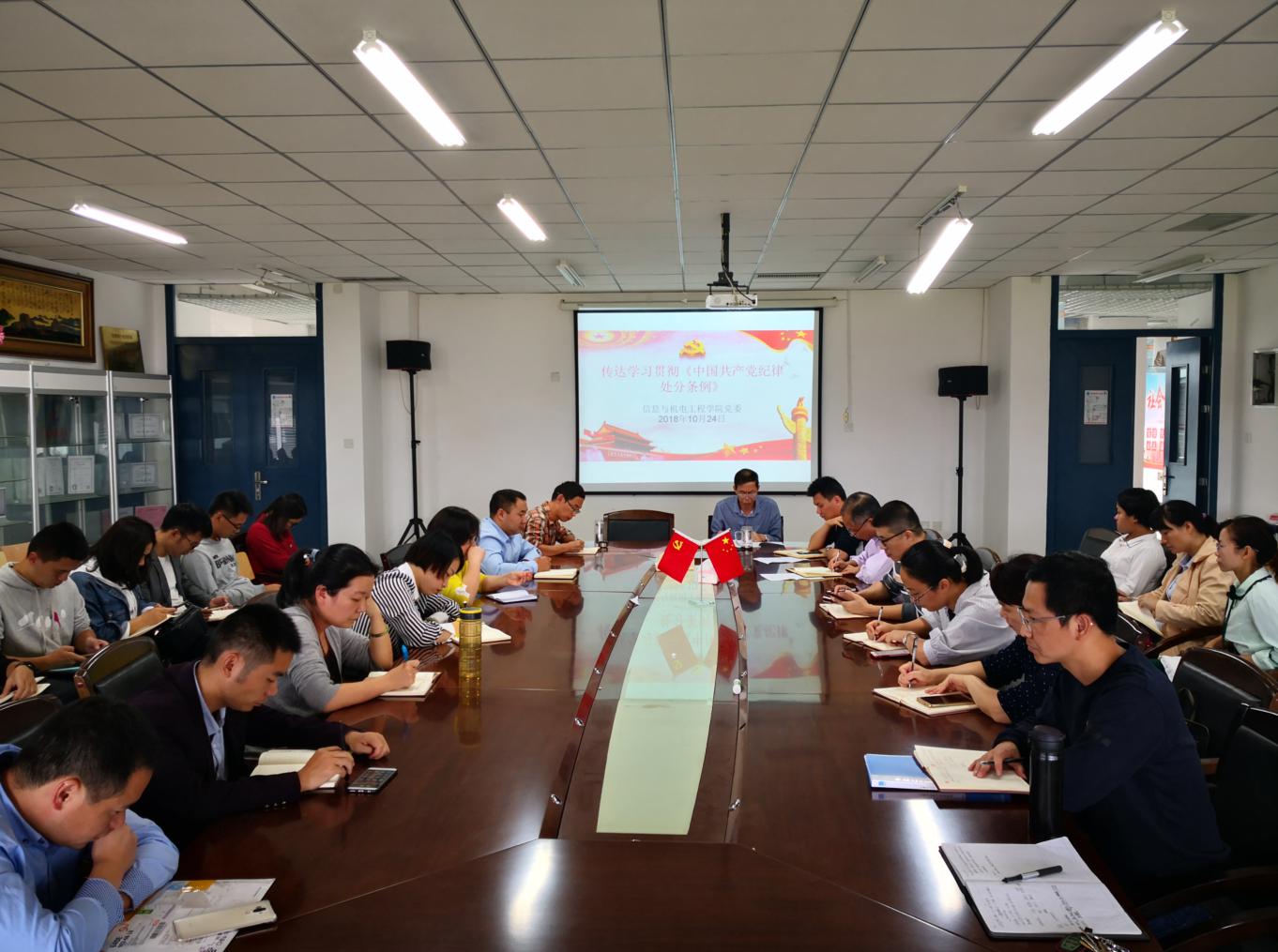 2018年10月24日下午,best365中国官方网站信息与best365中国官方网站党委组织学院全体教职工党员召开学习会议,专题学习新修订的《中国共产党纪律处分条例》(以下简称《条例》)。信息与best365中国官方网站党委书记陈茂和主持会议。