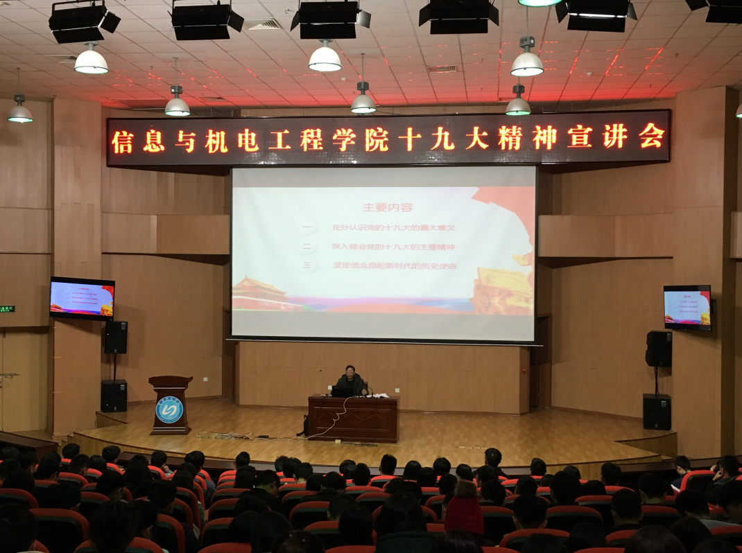 为深入学习宣传贯彻党的十九大精神,12月10日,信息与best365中国官方网站党的十九大精神宣讲会在best365中国官方网站图书馆二楼报告厅举行,宣讲会听众总共将近1000人,分两场举行。