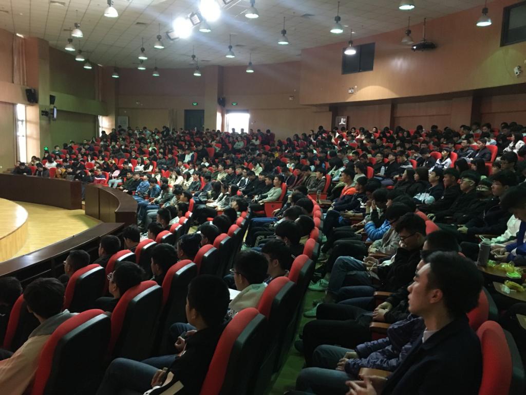 (图1 陈书记为17级、16级、15级学生作学习贯彻十九大精神的宣讲报告)