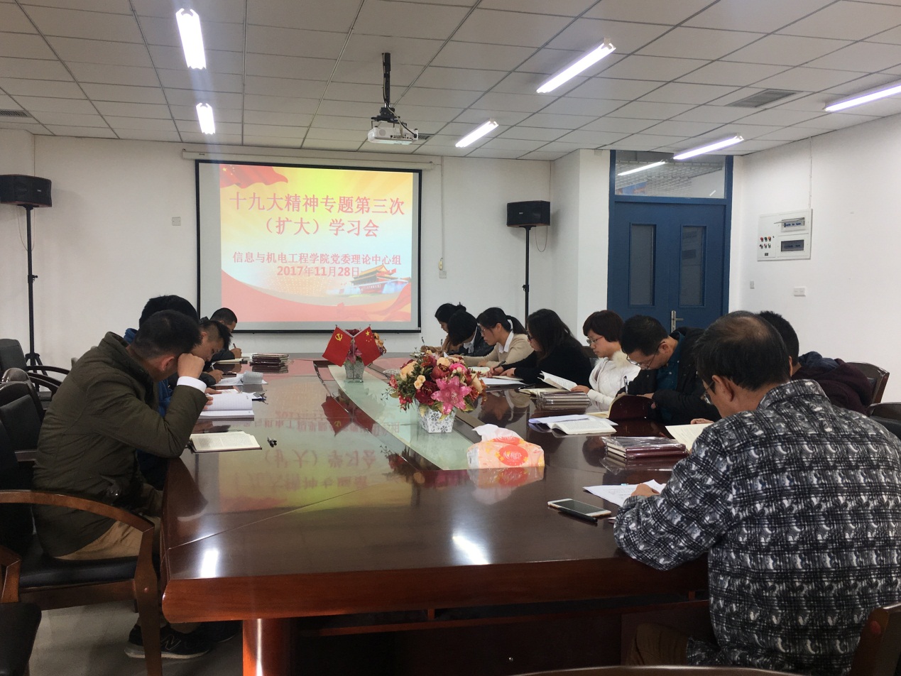 为了深入学习宣传贯彻党的十九大精神,信息与best365中国官方网站党委于2017年11月28日下午召开了第3次理论中心组(扩大)学习会议,进一步深入学习党的十九大精神,交流学习贯彻党的十九大精神心得。信息与best365中国官方网站党委书记陈茂和主持会议并讲话,信息与best365中国官方网站党委副书记傅亮、各科室部门科级干部以及各党支部书记和辅导员共十二人参加了会议。会上计算机系教师第一党支部书记吴玉芹、计算机系学生党支部书记王秋菊先后就自身学习贯彻党的十九大精神的心得体会进行了发言。接着,与会人员分别原原本本学习了十九大报告的第六部分至第八部分。最后陈茂和同志就今后如何深入学习宣传贯彻十九大会议精神提出了几点要求。