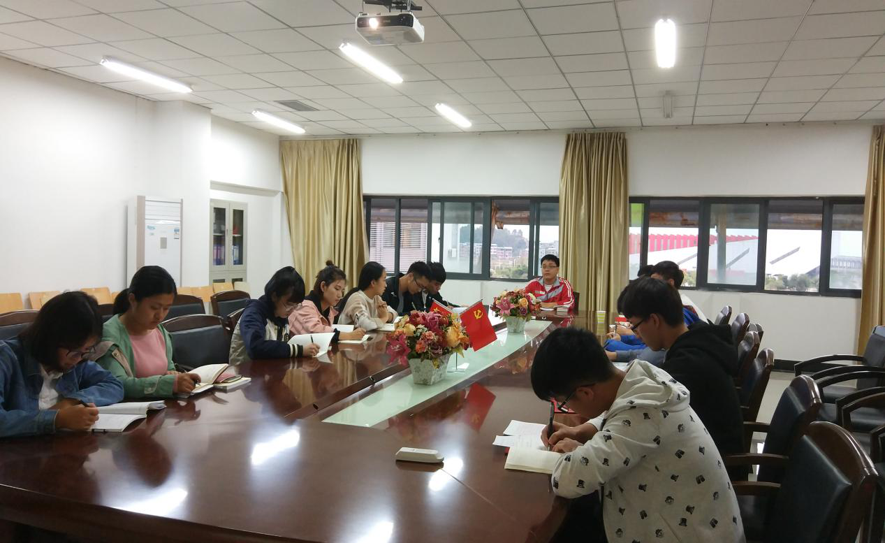 为进一步统一思想、凝聚共识,教育引导信息与best365中国官方网站机电系学生党支部全体党员不忘初心、牢记使命,把十九大精神转化为强大动力。2017年11月14日下午,机电系学生党支部全体师生党员在求是楼DA408会议室参加了“学习党的十九大精神,凝聚正能量,促进大发展”主题党日活动。