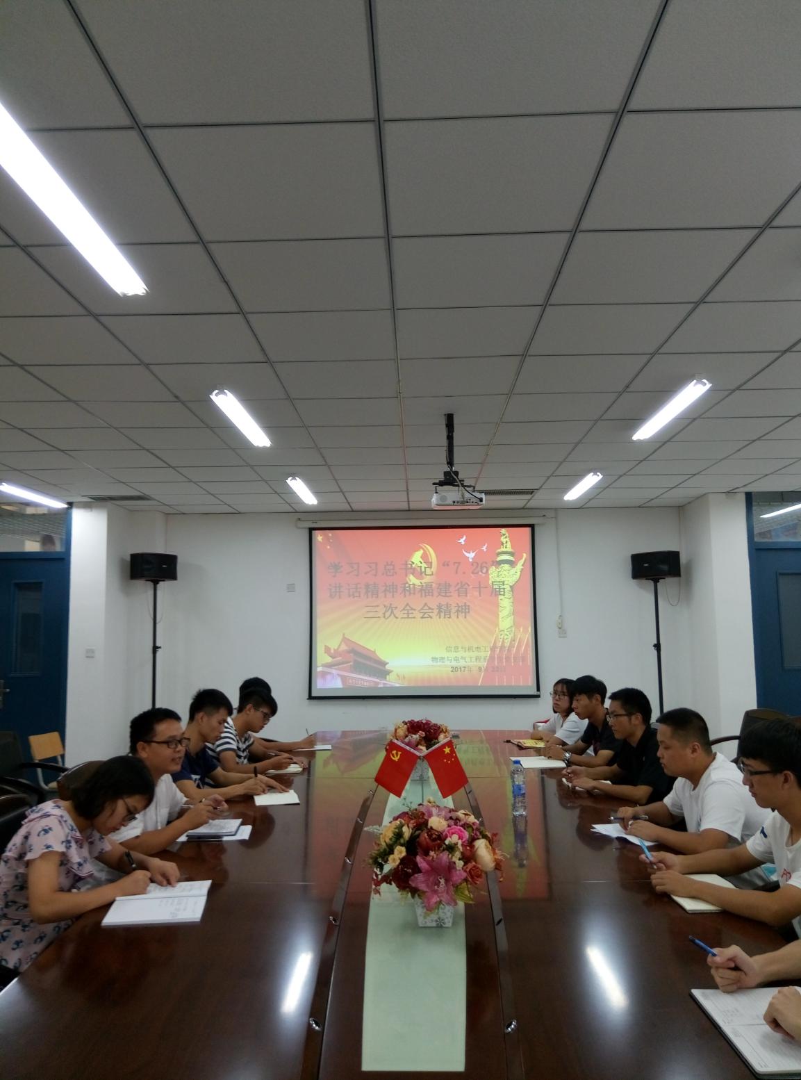 2017年9月23日,信息与best365中国官方网站机电系学生党支部全体党在DA408教室召开学习习近平总书记2017年7月26日讲话精神和十届三会精神主题党日活动,本次会议由学生党支部书记卓敏主持召开。