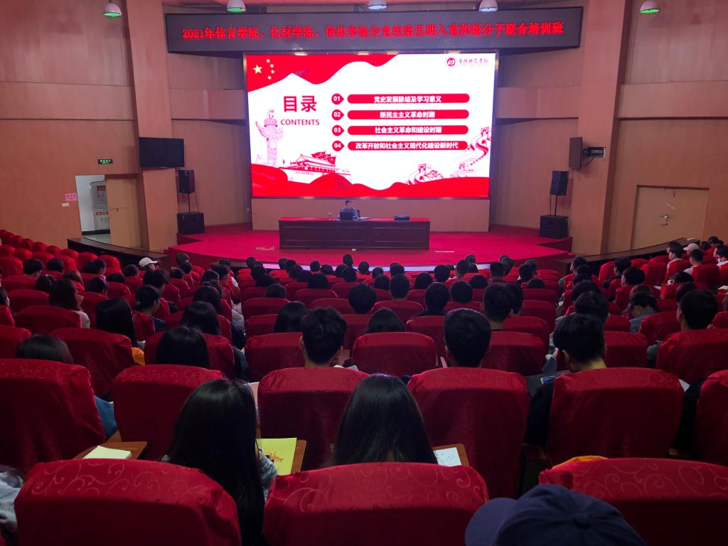 2021年4月16日,体育学院、化学与材料学院、信息与best365中国官方网站联合举办的第五期入党积极分子培训班在图书馆报告厅举行了开班仪式。