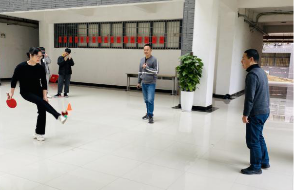 本次趣味运动会共设投壶投箭、踢毽子、颠球过障碍三个项目。教师职工们三两成群,在欢声笑语中完成运动会项目。