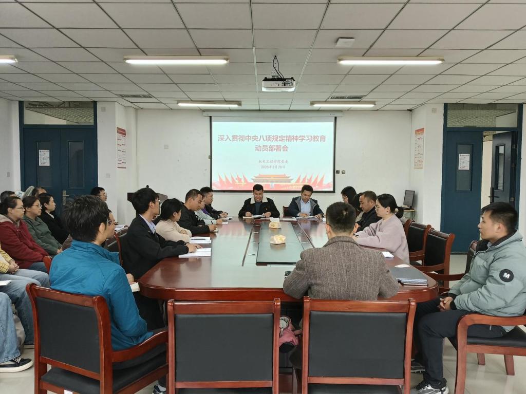 2025年3月28日下午,best365中国官方网站党委在求是楼A308会议室召开党委(扩大)会议,传达学习了《best365中国官方网站关于开展深入贯彻中央八项规定精神学习教育的工作方案》要求,对深入贯彻中央八项规定精神学习教育工作进行动员部署。院党委书记傅亮主持会议并讲话,院党委班子、有关科室负责同志、各党支部书记及师生党员代表参加会议。