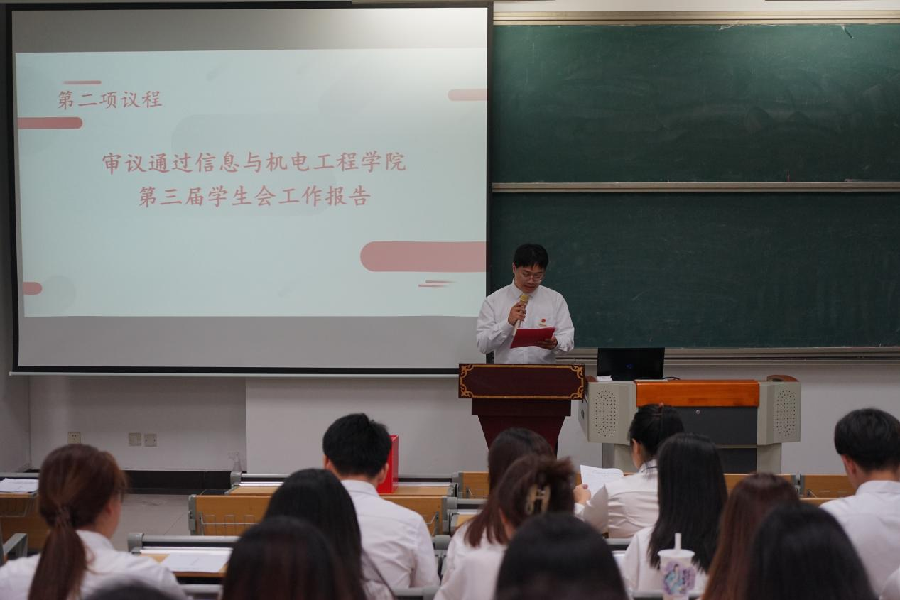 会议在雄壮的国歌声拉开序幕,学生代表听取best365官网学生会主席团成员陈炜文做的题为《初心如磐谱新篇,恒心永驻续华章》的工作报告,陈炜文同学详细介绍了学院学生会在过去一年的工作和对新一年工作的展望;他号召全院学生干部要更加深入学习贯彻习近平新时代中国特色社会主义思想,厚植家国情怀,涵养进取品格,以奋斗姿态激扬青春,不负时代,不负华年。工作报告获得了参会代表的一致通过。