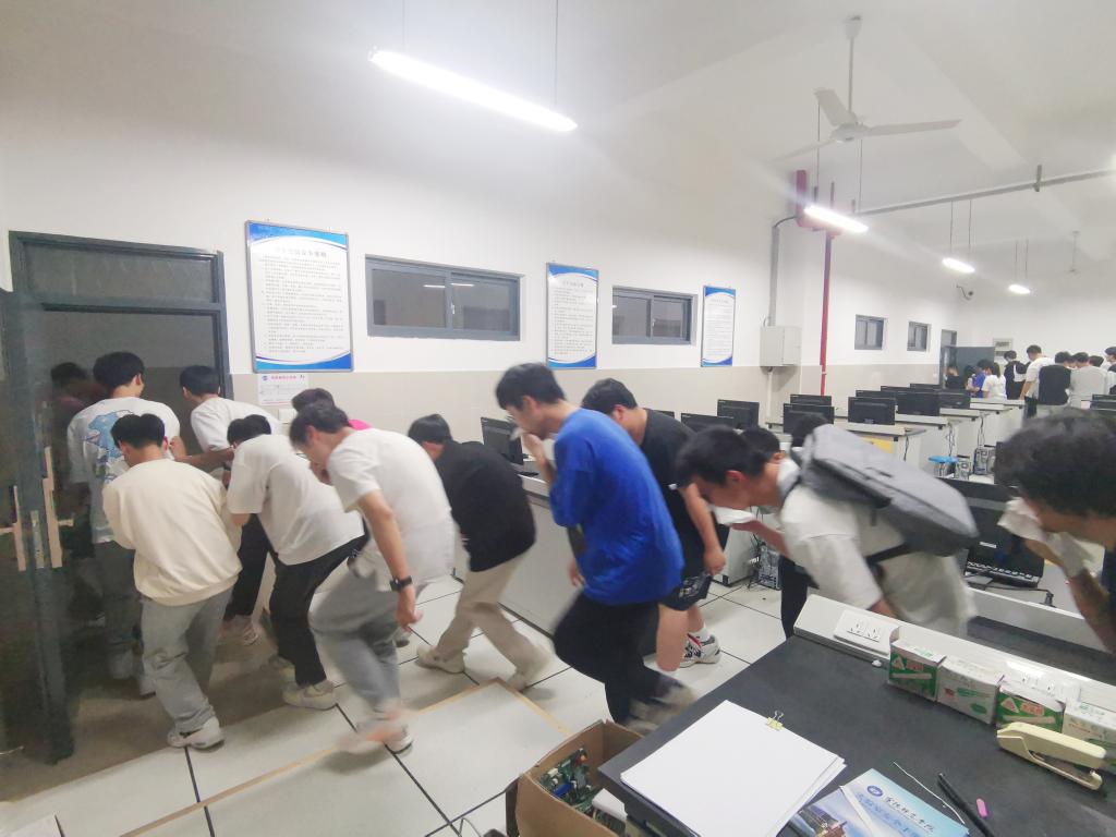 14时20分,演练正式开始。按预定计划进行了实验室模拟失火,值班巡逻人员现场处置,触发消防警报和应急响应预案,楼内师生按照指定逃生线路在规定时间内顺利完成全部人员的应急疏散。