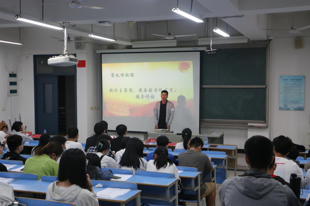 之后,学院党委副书记傅亮老师上台发言,肯定了上一届团委学生会成员的付出与努力,同时与学生分享对团委学生会的理解与认识,鼓励同学们勤学苦练,并对新当选干部提出建议与要求。