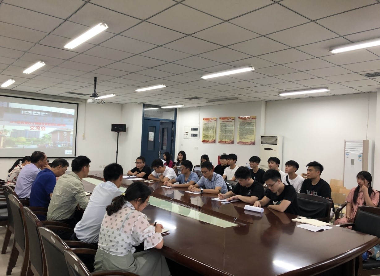 6月25日下午,赴台学习学生返校交流会在求是楼A408会议室召开,院党委书记陈茂和,学院副院长章立亮、赖联锋,院党委副书记傅亮,办公室主任江小青,学工办主任兼团委书记王秋菊,辅导员张春美出席交流会,2016级机械设计制造及其自动化专业(闽台)班全体学生参加了此次会议。会议由院党委副书记傅亮主持。