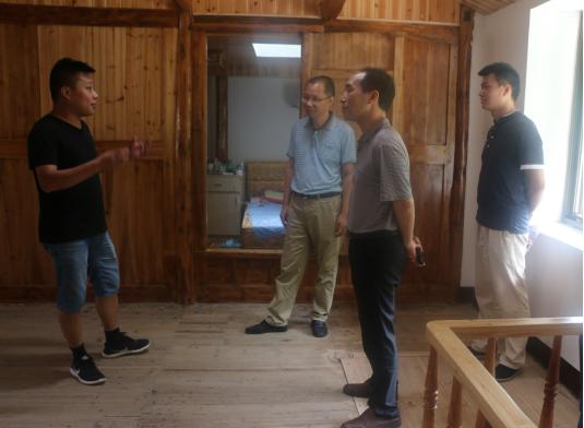 郑立文书记等领导一行首先亲切问候参加社会实践的团队成员:“你们在这边生活的好吗,大家都还习惯吗?”并且鼓励队员们坚持体验艰苦生活,磨炼我们的意志。并参观了邑村及邑村特色民宿建设,详细了解了在我系挂村干部余苏毅老师的工作和生活情况。
