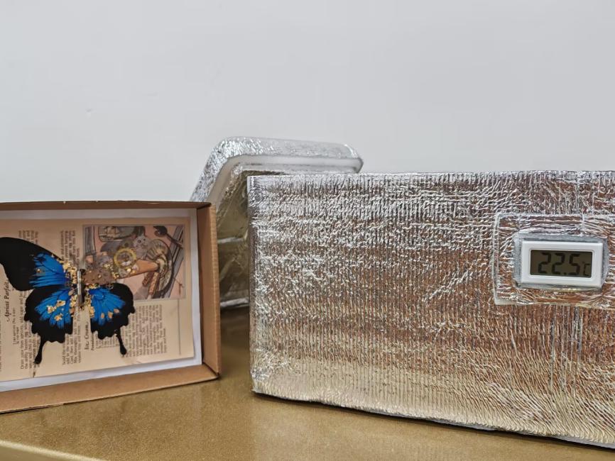 一等奖由数理学院杨雅琦同学凭借作品《制冷小冰箱》斩获,作品以泡沫盒为主体,巧妙融合废旧半导体致冷片、散热风扇等材料,通过精巧设计实现稳定制冷功能,将废旧材料转化为实用家电,创意与实用性兼具;二等奖归属数理学院陈珊珊同学的作品《环保手工空调》,团队选用废旧纸箱作外壳,搭配废弃塑料部件、旧空调扇叶及自制水循环冷凝装置,以低成本环保方案打造出简易制冷设备;语言文化学院左郦竹同学的作品《机械之心,循环动力》、旅游管理学院林烨静同学的作品《机械蝴蝶》获得三等奖。前者利用废旧塑料瓶、橡皮筋等材料自制小风扇,通过动力传动结构设计模拟循环动力原理;后者以废旧金属丝、塑料薄片手工打造造型逼真的机械蝴蝶,结构设计与艺术呈现亮点突出。