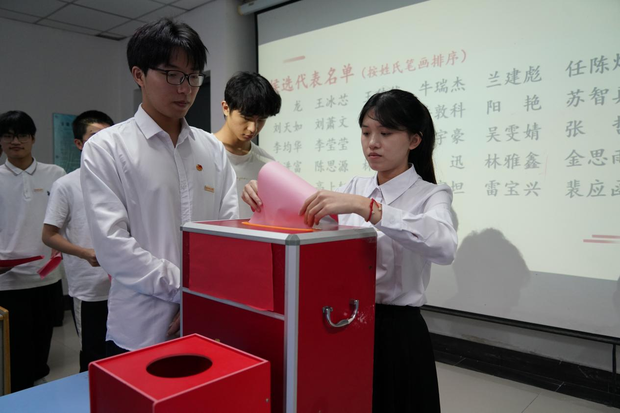 选举环节严格遵循民主、公平、公正、公开原则。全体代表依次表决通过《大会选举办法》及总监票人、监票人名单,随后在监票人的全程监督下,以无记名投票方式郑重行使民主权利。经过严谨计票与结果公示,大会成功选举产生王冰芯、吴雯婧、吴宇豪同学为新一届学生会主席团成员,并推选出18名学生代表参加校级第七次学生代表大会。