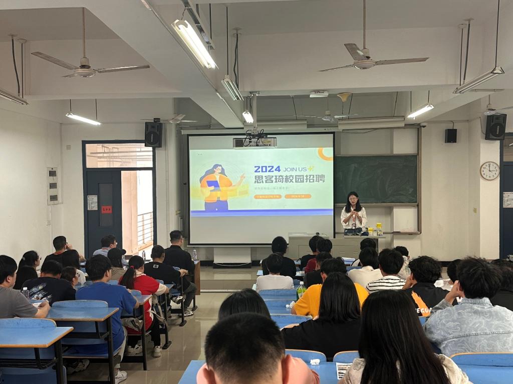 本次宣讲由宁德思客琦智能装备有限公司人事部的游夏妍主持,介绍了思客琦的发展历程与主要制造方向,展示了公司各岗位特征与面向专业人才的需求。公司视觉研发部的负责人王兴鹏介绍了公司主要负责项目和具体工作内容。同学们认真倾听,有70余位来自best365中国官方网站不同专业的同学参加活动,多名学生会后停留递交简历和询问公司细节,同学们反响热烈。