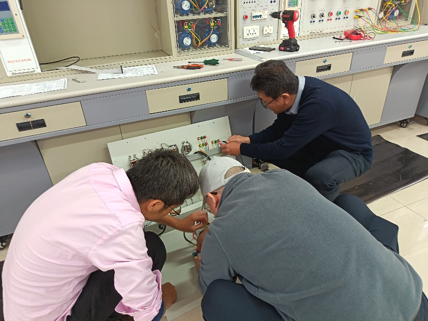 指导教师在维修电工培训设备