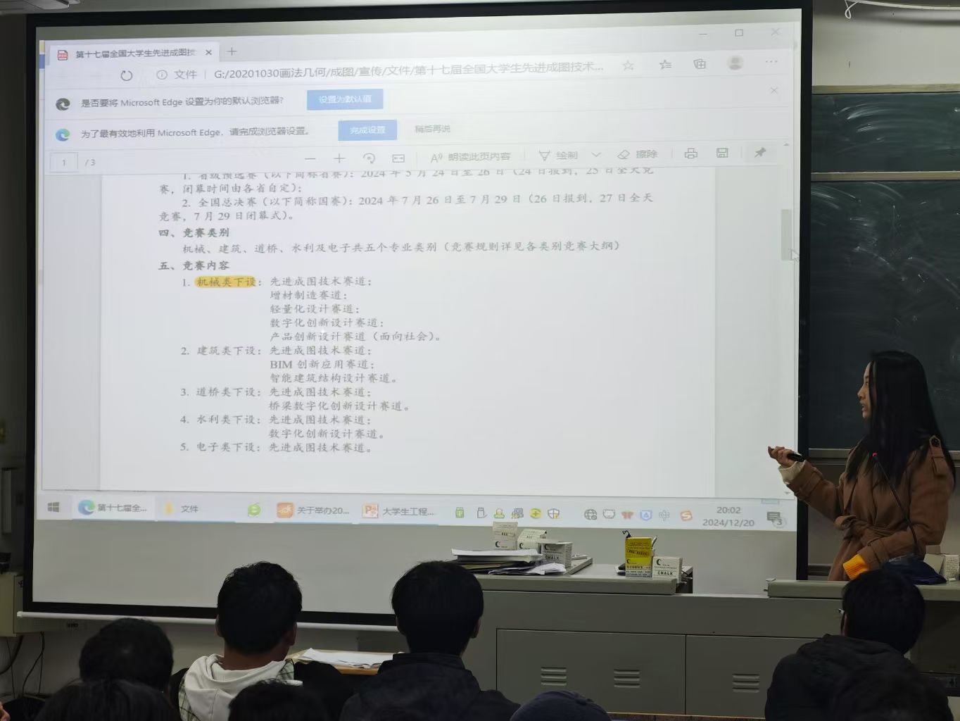 为让同学们了解学科竞赛相关内容,帮助同学们更好地做好竞赛规划,指导同学们高效备赛,为2025年best365中国官方网站参加学科竞赛奠定坚实基础。12月19日-12月20日,学院组织机械学科竞赛负责老师在DB301阶梯教室讲解机械学科竞赛相关内容,2023级和2024级机械、机械闽台和车辆专业约80余名同学参加讲座。