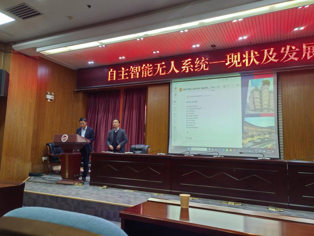 报告会上,谢院士介绍了无人系统的基本定义,生活中常见的智能无人系统以及未来的发展市场规模;深入浅出地阐述了智能无人系统传统从传统核心技术-感知、思考、行动到感知、思考、行动、交互、思考的新范式的转变,采用了大一统模态融合SLAM和多模态融合等技术,实现高精度自动定位、高可靠性以及低硬件需求的目的,同时例举了不同类型的智能无人系统,大大开拓了与会师生的视野。谢院士还介绍了细分领域的智能无人系统的技术挑战以及可能的解决方案,包括无人机结构检测、物流和服务器机器人通用智能导航系统等,充分体现了智能无人系统强大的功能和巨大的技术优势。最后,谢院士还介绍了新加坡先进机器人创新中心的研究重点和主要的研究领域,希望未来有机会能够建立更多的合作和交流。